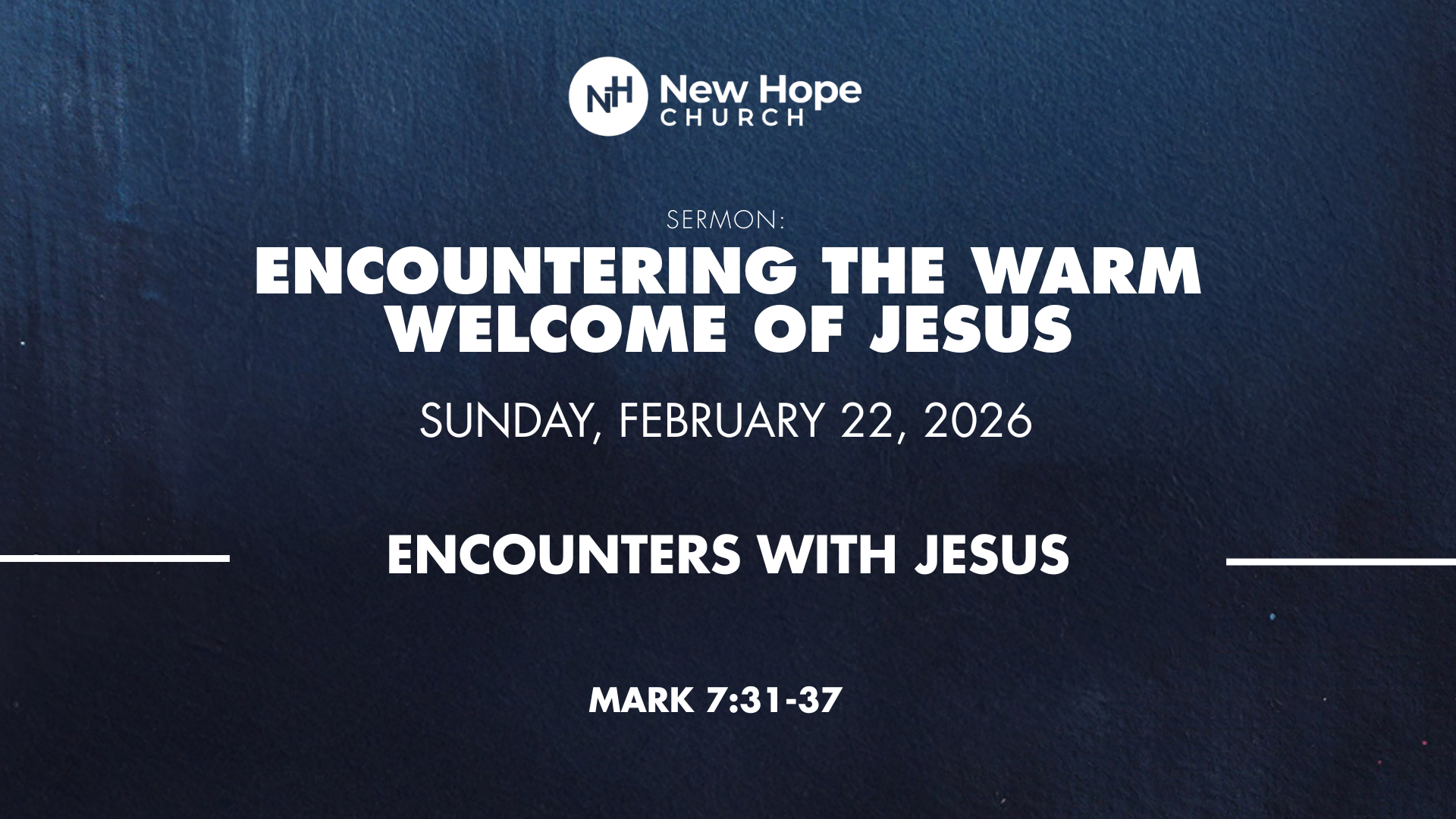 Sermon Title: Encountering The Warm Welcome of Jesus